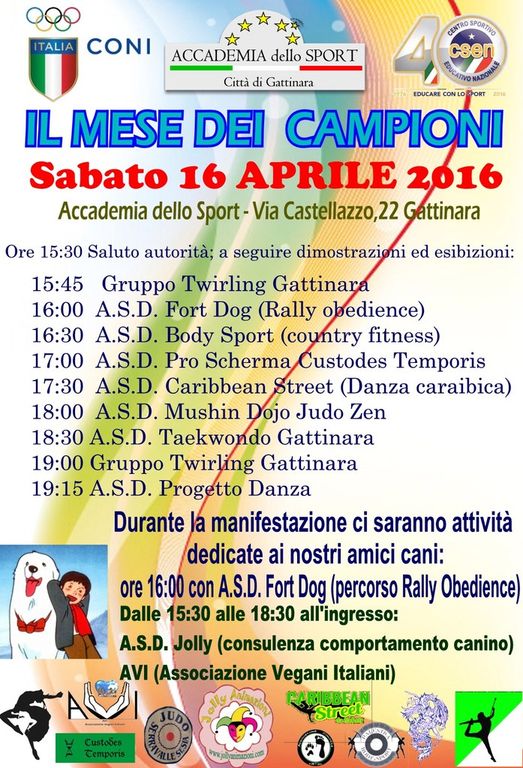 Sabato 16 Aprile 2016 si terrà presso l’Accademia dello Sport di Gattinara in Via Castellazzo 22, l’evento “IL MESE DEI CAMPIONI” organizzato dal CONI Vercelli in collaborazione con CSEN Vercelli.