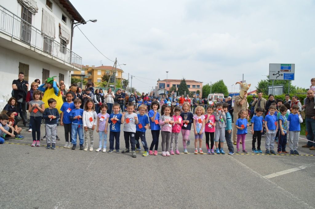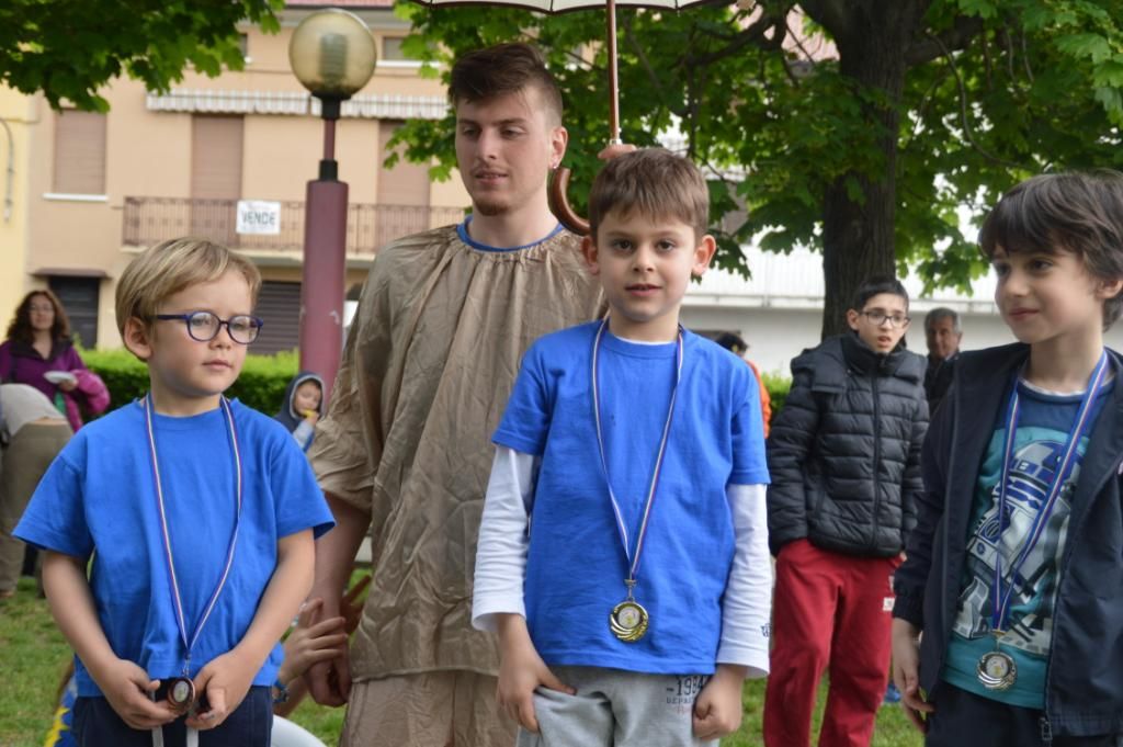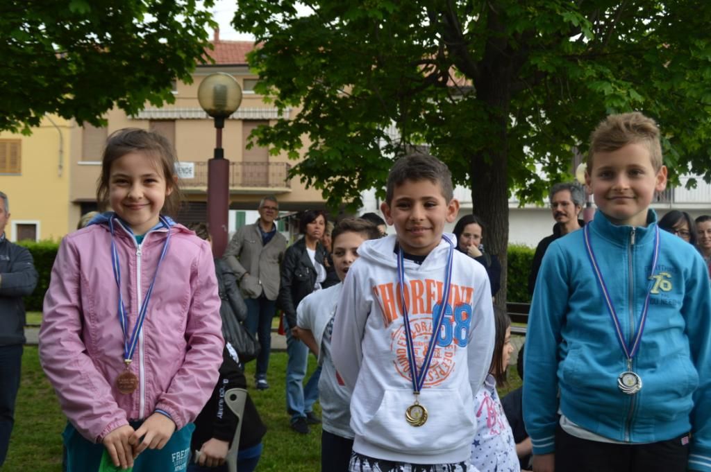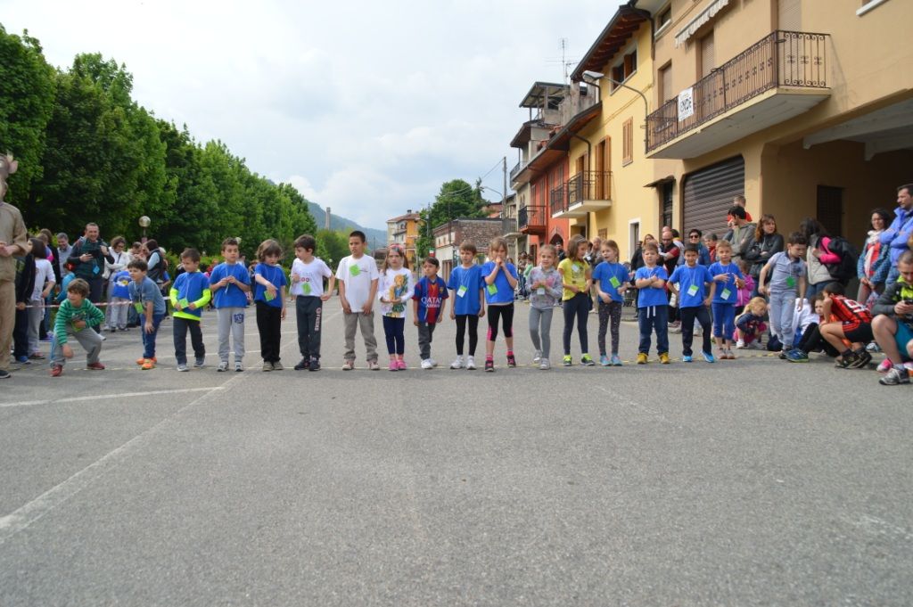 Ed è davvero corretta l’espressione “andata in scena” perché, sebbene si tratti di una manifestazione sportiva, l’evento, con costumi, colori, giochi, musica e tant’altro, ogni anno si trasforma in qualcosa di molto vicino ad uno spettacolo. Il teatro appunto, è la zona del parco dei bambini di Romagnano, che l’amministrazione mette gentilmente a disposizione dell’Associazione, intorno al quale avvengono le varie gare, divise per categorie, per età e, trattandosi di “Arcobaleno”, anche per colori: la gara “bianca”, 175 metri, riservata ai bambini da 0 a 2 anni (ovviamente con i genitori), la gara “gialla”, 350 metri, per i bambini di 3 anni, il cui ordine di arrivo è stato il seguente: Nicolò Romagnoli, Chiara Signorini e Clotilde Arfino, “arancio”, per i 4 anni, sempre 350 metri, con in classifica Alice La Carbonara, Anna Gramalero e il pari merito tra Rebecca Tonetti e Jacopo Sella, gara color “rosso”: 5 anni con 350 metri da percorrere; ordine d’arrivo: Simone Berrini, Elia Miglietta e Jacopo Dotti, la gara “verde chiaro” di 500 metri, coi bambini di prima e seconda elementare con classifica doppia: per la prima elementare Samuele Anselmino, Andrea La Carbonara e Stefano Scolari, per la seconda elementare Luca Brisarini, Davide Renolfi e Martina Migliorini, colore “verde” della lunghezza di 750 metri, terza e quarta elementare ha visto arrivare davanti a tutti Lorenzo Battistella, Valentino Zerbin e Irene Iannaccone, ultima, la gara “blu” dalla quinta elementare, al termine del chilometro la classifica era la seguente.