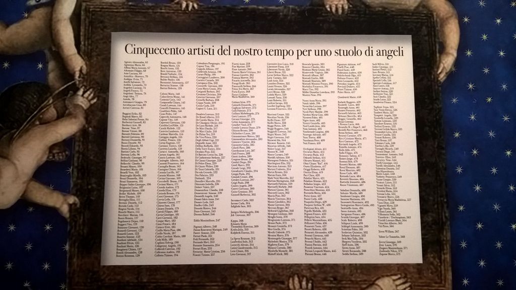 Grande successo di pubblico al Vernissage dell'eccezionale Mostra intitolata "Los Angeles" alla Reggia Reale di Monza voluta dallo straordinario Daniele Crippa, critico d'arte e Presidente del Museo del Parco di Portofino con la fantastica Dott.ssa Serena Mormino, critico e curatrice d'arte del Museo del Parco di Portofino e Presidente dell'Associazione Culturale "Amarte" e con la preziosa collaborazione dell'Editore Bellavite che ha pubblicato tutte le opere degli artisti nel volume intitolato "Angeli e Artisti nella Iglesia De Los Angeles". Tutte le opere esposte, ognuna rappresentante un angelo interpretato in modo diverso, per "La Iglesia De Los Angeles" e El Milagro nel nord est argentino, sembrano costituire insieme un'incredibile Opera monumentale e collettiva. A rendere ancora più sensazionale l'evento vi è stata una performance originalissima da Guiness dei primati: tutti gli artisti presenti hanno firmato in contemporanea la cornice che ornava la propria opera.