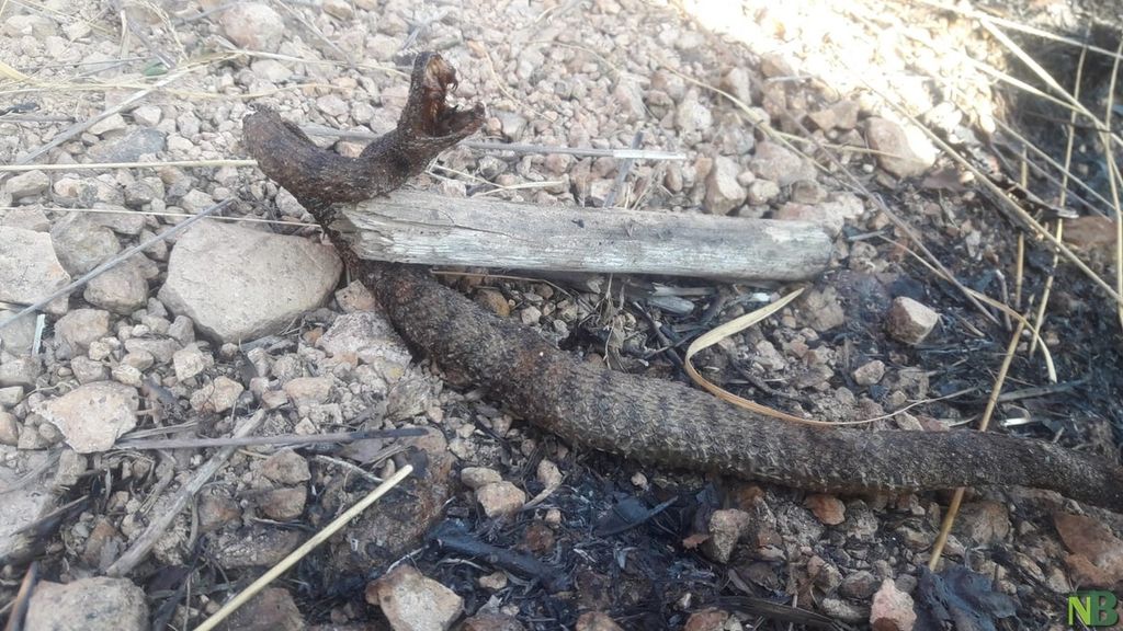 L'incendio che da lunedì scorso ha colpito i boschi della Valsesia e della Valsessera è stato spento. La situazione è sotto controllo ed è monitorata costantemente. Domani Vigili del fuoco e antincendi boschivi procederanno con la bonifica della zona, sempre tenendo sotto controllo eventuali focolai che potrebbero ripartire a causa delle condizioni climatiche. Attualmente il pericolo per popolazione e abitazioni è scampato. Diversamente si può dire per la natura e per l'intero ecosistema, che in questi giorni è stato devastato. A testimonianza di ciò, oltre agli animali scappati dai boschi, la carcassa di una vipera carbonizzata (in foto) rinvenuta durante le operazioni di spegnimento.