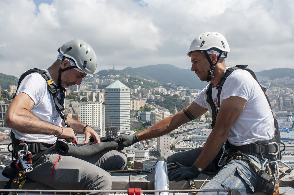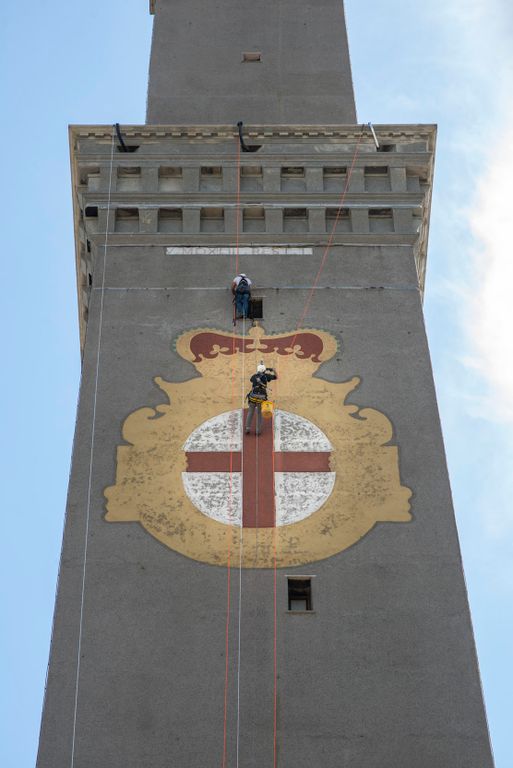 Si tratta di un intervento altamente spettacolare: chi transita in auto nel centro di Genova non può fare a meno di notare i professionisti che, agganciati alle corde, operano sullo stemma. Il tutto, è ovvio, dopo un’accurata valutazione dei rischi che ha permesso il via ai lavori.