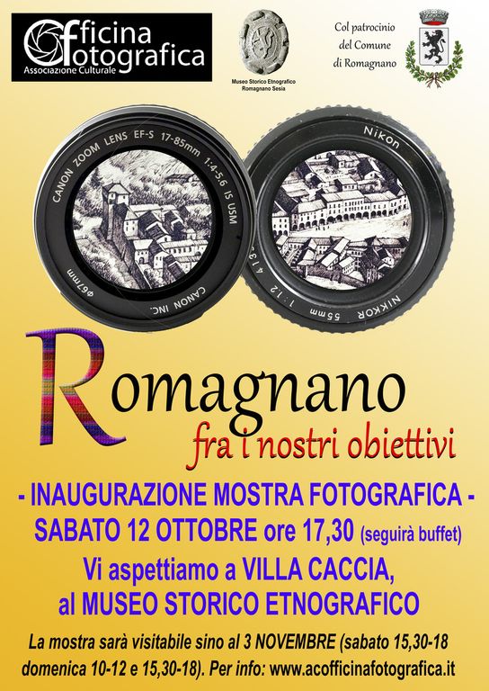 Si svolgerà sabato 12 ottobre alle 17,30 al Museo Storico Etnografico della Bassa Valsesia con sede nella antonelliana Villa Caccia, la premiazione del concorso fotografico "6 in Baraggia". Dopo la presentazione della mostra "Romagnano fra i nostri obiettivi" dell'associazione Officina Fotografica, con sede a Romagnano Sesia. La mostra sarà aperta fino al 3 novembre il sabato dalle 15,30 alle 18 e la domenica dalle 10 alle 12 e dalle 15,30 alle 18.