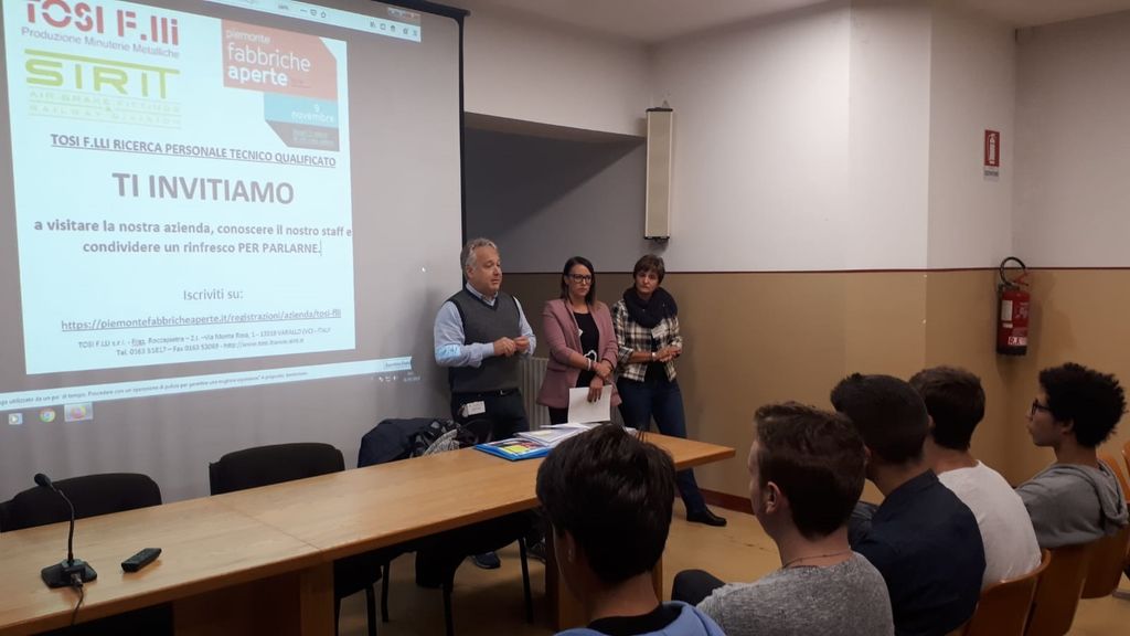 La Tosi F.lli incontra gli studenti del Lancia. L’azienda varallese, con sede nell’area industriale di Roccapietra, ha incontrato prima i ragazzi dell’Iti a Cascine Agnona e poi i ragazzi dell’Ipsia di via Marconi. Motivo della visita era presentare l’iniziativa “Piemonte fabbriche aperte” cui l’azienda aderisce per la prima volta e invitare i giovani a parteciparvi.
