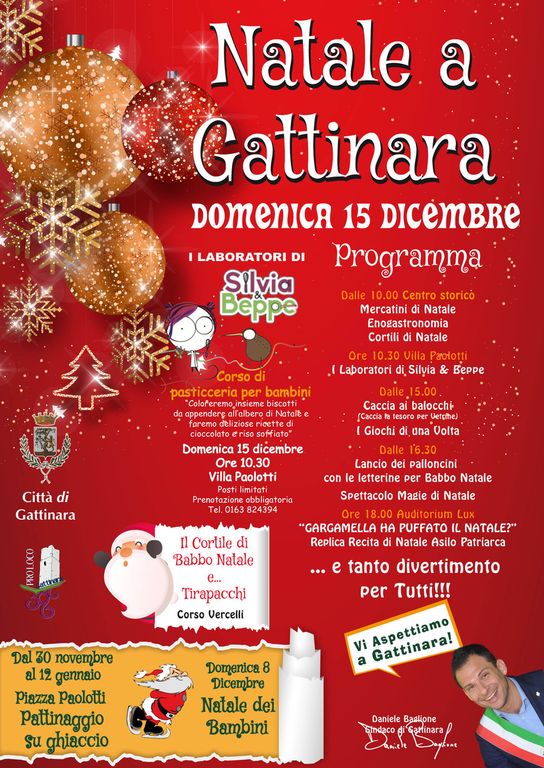 Una gioiosa atmosfera festiva invade il centro storico di Gattinara per il periodo natalizio, sono infatti in programma diverse iniziative per animare la Città, che culmineranno con la giornata di domenica 15 dicembre.