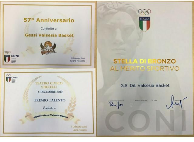 Anche Gessi Valsesia Basket è stata premiata con la “STELLA DI BRONZO PER SOCIETA’ ", come “ TALENTO DELLO SPORT” e festeggiata per il suo “57° ANNIVERSARIO” : infatti la società valsesiana è nata con l’affiliazione alla Federazione Italiana Pallacanestro il giorno 1 Luglio 1962; ai tempi si trattava dell’affiliazione numero 344 in tutta Italia, tuttavia molte storiche società, per vari motivi, non esistono più e Valsesia Basket risulta essere oggi una delle più “vecchie” Società d’Italia.
