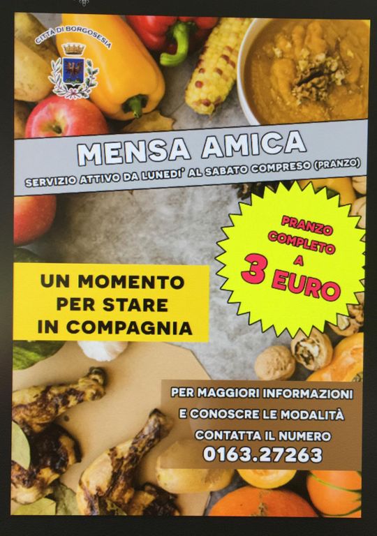 5 mila euro all’anno per i prossimi tre anni: è tangibile l’impegno del Comune di Borgosesia a favore di Mensa Amica, il servizio erogato dal Circolo Ricreativo-Culturale Fratelli Allegra, e nell’ultima riunione la Giunta ha deciso di erogare un contributo fino a fine mandato per il mantenimento di un servizio che sta incontrando il favore di un pubblico sempre più numeroso: "Mensa Amica è un grande valore per Borgosesia – spiega il Consigliere Francesco Nunziata, rappresentante del Consiglio Comunale di Borgosesia con diritto di voto al Centro Anziani – e come tale continuiamo a trattarlo: il Sindaco e la Giunta hanno riconosciuto l’elevato valore sociale che rappresenta, ed hanno deciso di sostenerla perché non si ripresenti il rischio, paventato nel corso dell’autunno 2019, di chiusura".