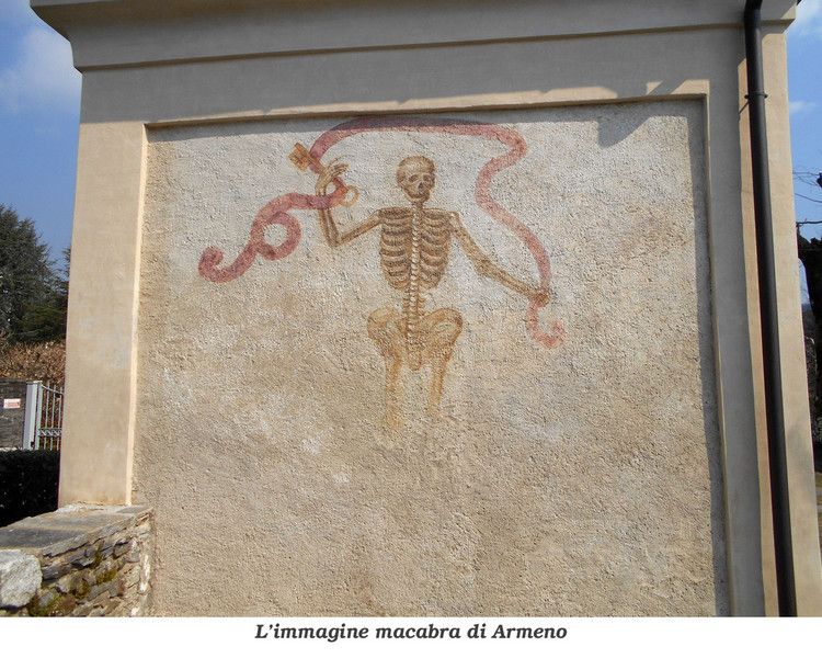Questa suggestiva possibilità prende consistenza se la si paragona ad un analogo, altrettanto misterioso ed intrigante manufatto murato da chissà quanto tempo sul muro di cinta della chiesa parrocchiale di Santa Maria Assunta nel paese di Armeno, sulle colline che sovrastano il lago d’Orta, poco discoste da quelle del Sacro Monte e dalla parte lacustre opposta al santuario della Madonna del Sasso.