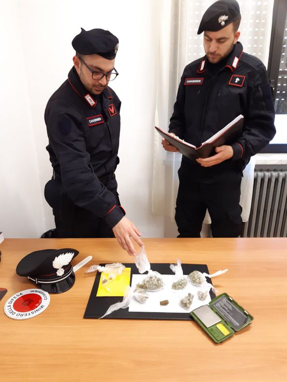 L'uomo è stato controllato nella serata del 6 aprile mentre era a piedi a Sostegno. A seguito della perquisizione personale i militari hanno rinvenuto 35 grammi circa di marijuana e 8 circa di hashish. Il successivo controllo in abitazione ha consentito di trovare ulteriori 2 grammi di marijuana e 2 di hashish. Lo stupefacente è stato sottoposto a sequestro.
