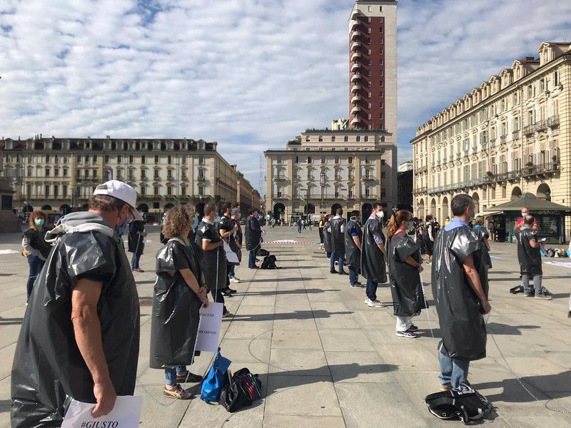 Gli eroi sono stati dimenticati. È questa la grande accusa che gli infermieri piemontesi del Nursid rivolgono alle istituzioni locali e nazionali. Vestiti con i sacchi neri dell’immondizia che sono stati costretti a utilizzare nei lunghi mesi di lotta al Covid, gli infermieri hanno omaggiato sdraiandosi per terra i 40 colleghi che hanno perso la vita dopo aver contratto il Coronavirus nei reparti. “Onoriamo le perdite che abbiamo avuto con 40 bare, sono le cicatrici che ci portiamo dentro e nessuno ci risarcirà mai” urla al megafono Francesco Copolella, segretario del Nursind Piemonte. L’accusa è pesantissima. “Oggi quelli della prima linea, quelli del fronte, quelli che avete mandato a combattere una guerra nudi e senza difese, quelli che chiamate eroi, li avete dimenticati”.