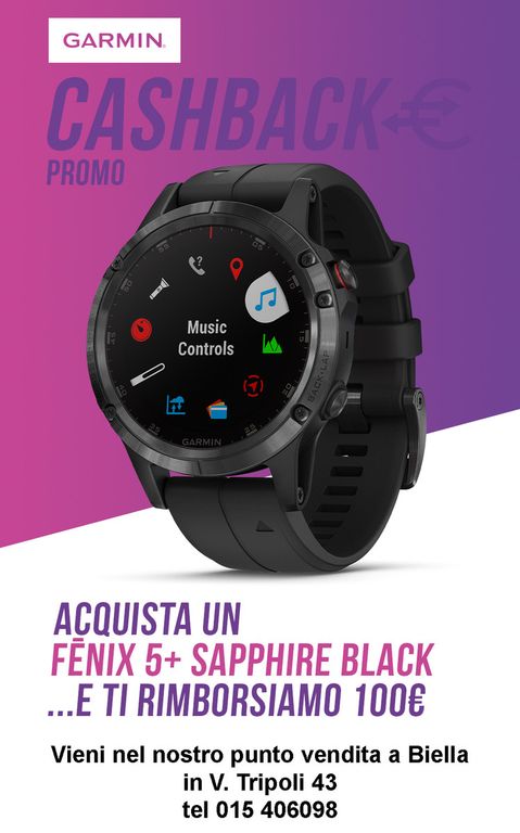 Dal 3 giugno al 31 luglio, una grande offerta: in caso di acquisto di modelli delle serie Fenix 5 e Instinct ci sarà la possibilità di ricevere uno sconto dai 50 ai 100 euro, direttamente da Garmin. Ad esempio acquistando un Instinct “Graphite” si verrà rimborsati per un totale di 50 euro mentre, per un Fenix 5 “Sapphire Black”, il rimborso raddoppia. Per avere maggiori informazioni basterà recarsi presso il punto vendita in via Tripoli 43, a Biella. Oppure telefonando al numero 015406098.