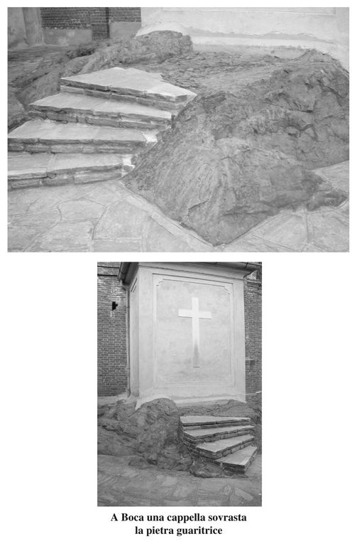 Eppure il masso guaritore di Boca caratterizzato da un’originale colorazione rossastra aveva in un lontano passato tutte le caratteristiche per apparire magico e non v’é dunque da stupirsi se nel ‘600 gle venne costruito accanto il nucleo originale dell’attuale santuario, poi ampliato a dismisura nell’Ottocento, crollato in parte nel 1907 (per “castigo di Dio” scrissero gli anticlericali impegnati ad erigere in quei mesi l’obelisco a Fra Dolcino sui monti triveresi) e poi riedificato e modernizzato.