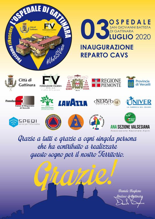 Il Progetto, da sogno, è diventato realtà in 60 giorni, nel corso dei quali tutti hanno contribuito a ottenere un grande risultato per la sanità della Provincia di Vercelli. Abbiamo lavorato insieme alla Direzione Generale e Sanitaria dell’ASL di Vercelli, alla Regione Piemonte, ai Sindaci e ai rappresentanti politici del territorio e ai tantissimi volontari di Protezione Civile. La disponibilità e la generosità di Fondazione Valsesia, di Fondazione Cassa di Risparmio di Vercelli, PPG Univer, Spedi srl e di Lavazza Spa hanno fatto il resto insieme ai tantissimi cittadini e aziende che hanno contribuito tramite la campagna di raccolta fondi. Venerdì 3 luglio alle ore 11.00, ci sarà l’attesissima inaugurazione del reparto CAVS con 20 nuovi posti letto. In piena emergenza sanitaria, al San Giovanni Battista, erano già stati attivati 10 posti letto per i pazienti Covid, ora se ne aggiungono altri 20 come CAVS (posti di Continuità assistenziale a valenza sanitaria).