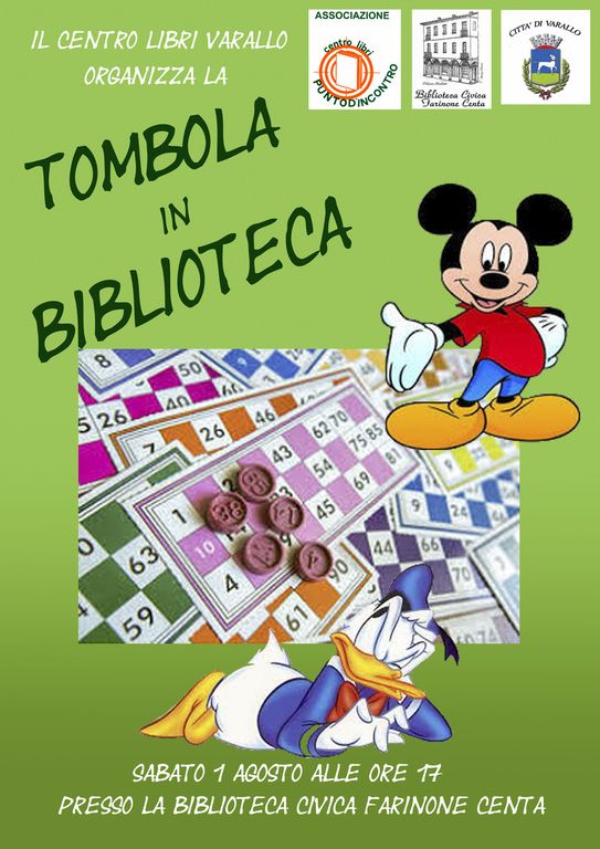 In occasione dell’Alpàa di Varallo, Il Centro Libri-Punto d’Incontro in collaborazione con la Biblioteca Civica “Farinone Centa” organizza “la Tombola in Biblioteca”, nella giornata di sabato 1 agosto, alle 17, nel cortile della biblioteca per bambini e ragazzi per un pomeriggio da trascorrere insieme.
