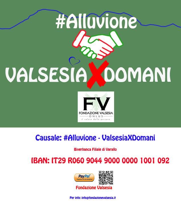 È con questo spirito combattivo e pieno d’amore per la propria terra che Fondazione Valsesia Onlus ha deciso di attivare una raccolta fondi straordinaria #Alluvione ValsesiaXDomani dedicata a sostenere la Valsesia e tutti i territori che compresi nel suo raggio di azione per aiutarli a ricominciare da subito a guardare avanti.