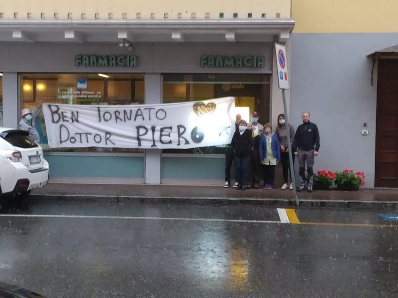 Proprio il giorno del rientro, lo scorso venerdì, alcuni cittadini, clienti e amici lo hanno accolto di fronte alla sua farmacia con degli striscioni di bentornato. Ad organizzare l'iniziativa i titolari del bar ristorante 3 Stelle dove ogni mattina, per colazione, il dottore incontrava alcuni amici pensionati.