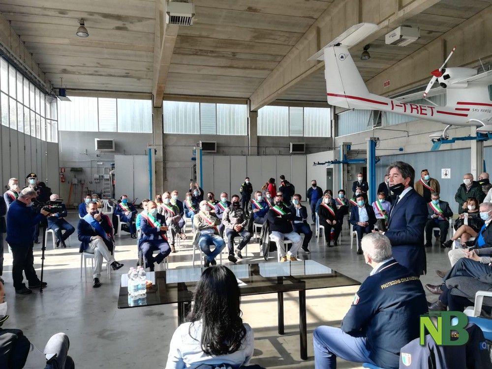 Il sopralluogo del Capo Dipartimento della Protezione Civile Angelo Borrelli sui luoghi del Biellese colpiti dall'alluvione del 2 e del 3 ottobre si è concluso con l'incontro all'aeroporto di Cerrione. Qui Borrelli, accompagnato come in Valle Cervo dal ministro al Territorio Lucia Azzolina e dall'onorevole Roberto Pella, ha incontrato i sindaci del quadrante Biella-Vercelli-Novara-VCO e i presidenti delle Province per confrontarsi sulla valutazione degli ingenti danni e sui fondi disponibili sia per la ricostruzione che la prevenzione.