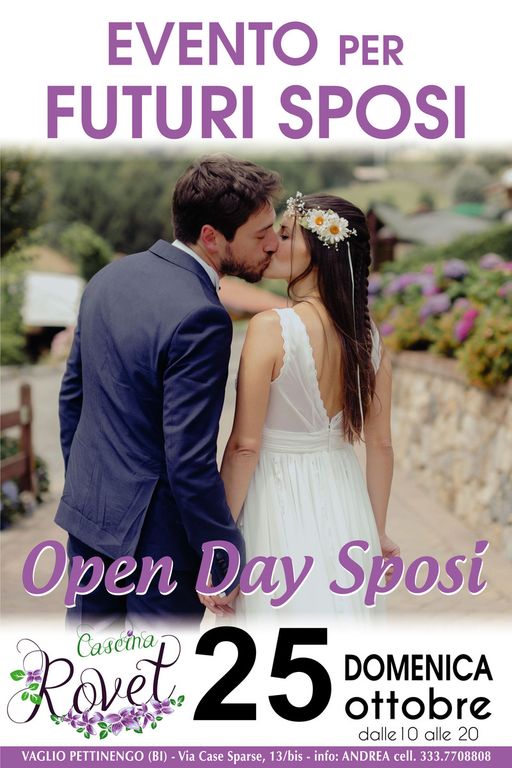 Novità di quest’anno è un concorso dedicato agli sposi che mette in palio un buono sconto del valore di 500 euro. Partecipare è semplicissimo! Basta collegarsi alla pagina “Open Day Sposi“ del sito e compilare l’apposito form di pre-registrazione all’evento, che attribuisce a ciascuna coppia un numero. Domenica 25 ottobre alle ore 19,30 si svolgerà l’estrazione, in diretta Facebook, che decreterà il vincitore. Il buono sconto è offerto da Cascina Rovet, Erica Crivellaro Wedding Planner e Gamba Catering e sarà spendibile sul pacchetto comprendente servizio di ristorazione, allestimento e location.