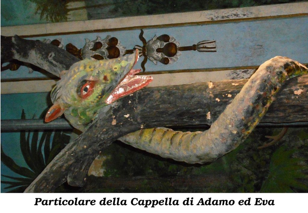 Come si può chiaramente vedere, nel gruppo statuario oggi presente nella cappella, l’essere infernale fra i due progenitori ha la testa d’un drago sul corpo d’un serpente.