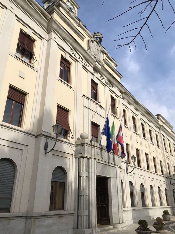 Bandiera nazionale ed europea a mezz’asta sulla facciata del Comune di Borgosesia, così come in tutta Italia, per la Giornata Nazionale in memoria delle vittime della pandemia, a sottolineare l’unione della Nazione davanti all’emergenza sanitaria, economica e sociale che l’Italia sta attraversando.