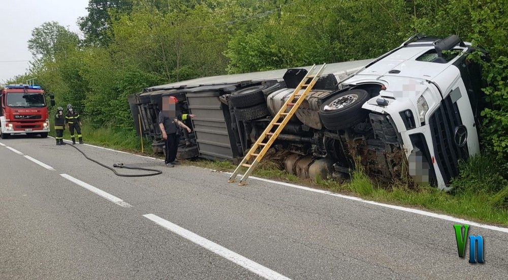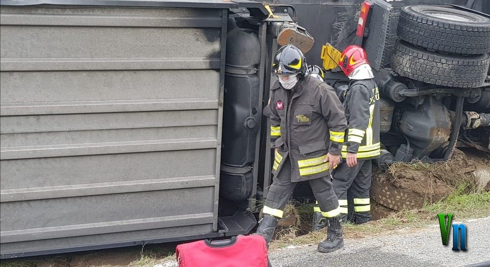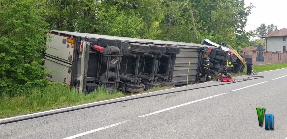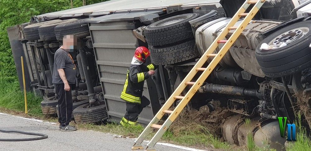 Perde il controllo del camion e finisce ribaltato fuori strada. È quanto accaduto poco fa, nella mattinata di oggi 15 maggio, in via Rovasenda a Gattinara. L'incidente, autonomo, è avvenuto per cause da accertare. Nessuna ferita per il conducente del tir, che ora dovrà probabilmente essere recuperato con l'aiuto della gru. Intanto i Vigili del Fuoco intervenuti sul posto stanno valutando eventuali pericoli e mettendo in sicurezza l'area e il mezzo. Con loro anche i Carabinieri per rilievi e viabilità.