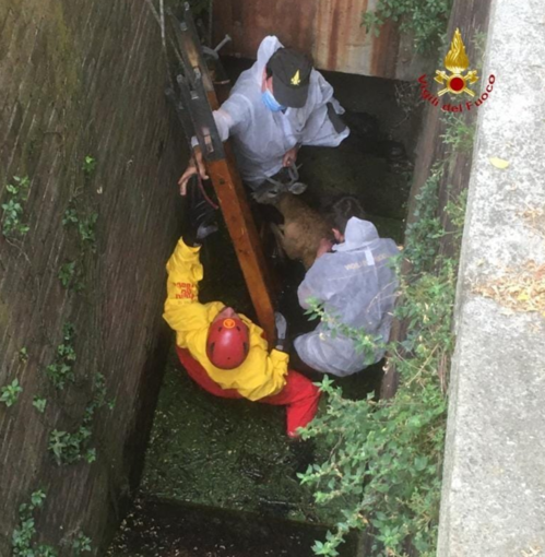 Poco dopo le 9 la squadra del Vigili del Fuoco del distaccamento permanente di Livorno Ferraris e quella dei volontari di Santhià sono intervenute a Santhià per il recupero dell’animale, rimasto bloccato all’interno di una vasca del vecchio impianto idrico.