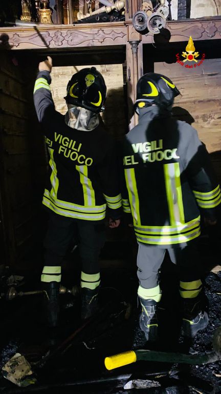 Grazie al tempestivo intervento dei Vigili del Fuoco, i danni sono stati contenuti e resta inagibile il solo locale interessato dalle fiamme, dove è andato distrutto un armadio contenente libri e paramenti sacri.