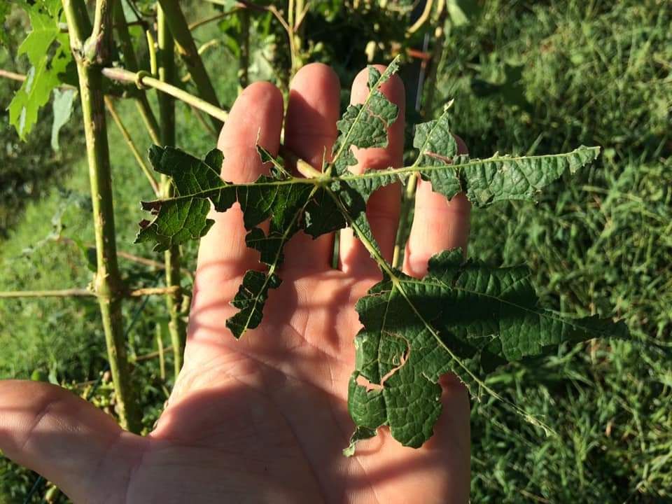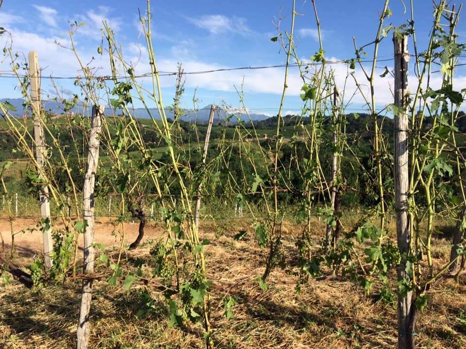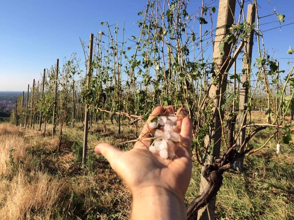 Qui i vigneti sono praticamente stati massacrati da grandine, pioggia e vento. Le piante hanno subito danni incredibili: grappoli e foglie sono altamente compromessi e si rischia di perdere il 100% della produzione.