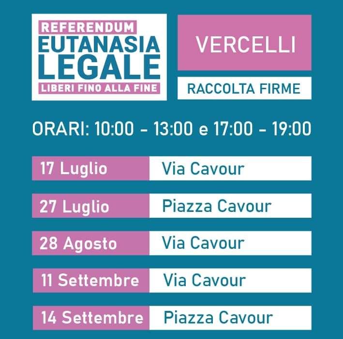 A Vercelli è possibile firmare nei seguenti luoghi: