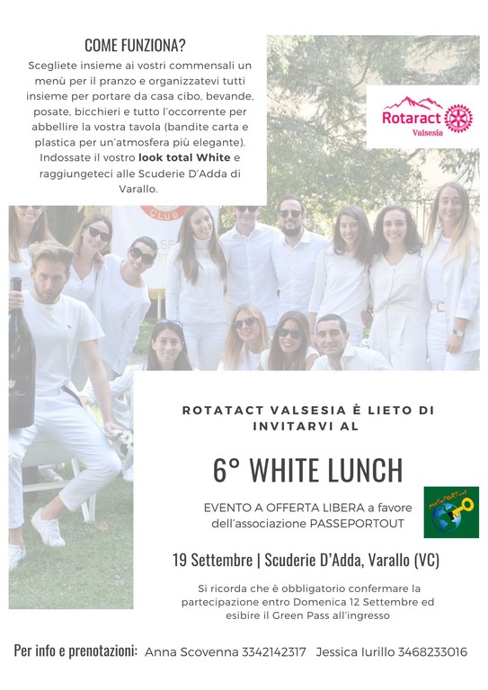 Le Scuderie D’Adda a Varallo ospiteranno, domenica 19 settembre, il sesto “White Lunch” organizzato dal Rotaract Club Valsesia, partner del Rotary Club Valsesia.