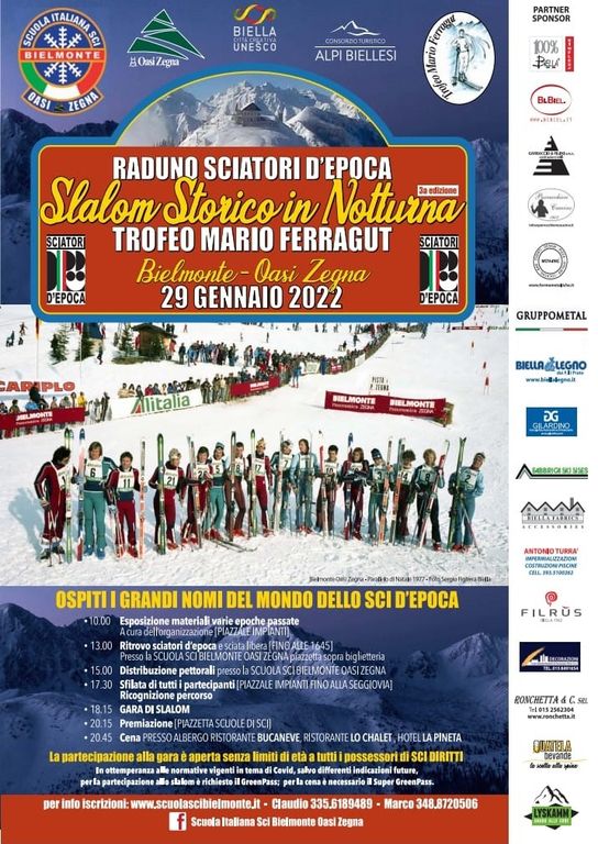 Giornata speciale quella che si svolgerà domani, sabato 28 gennaio, sulle piste di Bielmonte che accoglieranno la gara di sci d’epoca Trofeo Mario Ferragut. L’evento non è una semplice gara ma un raduno e una celebrazione che omaggerà la tradizione sciistica a partire dalle ore 10 del mattino, momento nel quale sarà possibile visitare una vera e propria esposizione di materiale d’epoca.