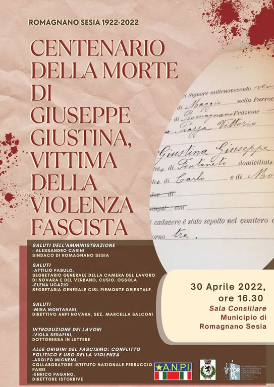 La cittadinanza è invitata a partecipare a questo momento di approfondimento storico in occasione del centenario di questo avvenimento Sabato 30 Aprile alle ore 16.30 presso il Municipio di Romagnano Sesia.