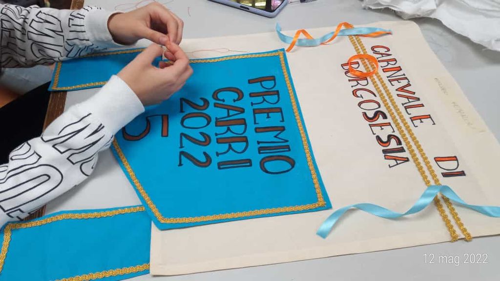 Prosegue anche quest’anno la collaborazione tra il Comitato Carnevale di Borgosesia e il corso Moda dell’Ipsia Magni. Gli stendardi che premieranno i carri allegorici e le mascherate a piedi sono stati infatti realizzati da studenti e docenti della scuola professionale di Borgosesia. E’ un rapporto che dura da tempo, iniziato con la borsa di studio Aldo Pagani, in memoria di un indimenticato Peru Magunella e consegnata ogni anno dalle maschere della città agli studenti più meritevoli, e passato attraverso tanti momenti di scambio e vicinanza. La realizzazione degli stendardi è una tradizione che risale ormai a numerose edizioni fa. In questo 2022, dopo la pausa forzata dell’anno scorso, si è messa all’opera la classe seconda dell’indirizzo Moda. Le studentesse, supportate dalle prof.sse Silvia Remondino e Annarita Steni, hanno prima presentato alcune proposte per il disegno da rappresentare al centro del manufatto, poi – dopo aver selezionato le due più rappresentative, hanno iniziato la confezione del prodotto finito. Uno stendardo sarà consegnato al primo classificato tra i carri del Palio dei rioni; un altro al primo classificato tra le mascherate a piedi. La consegna è prevista domenica 15, al termine dell’ultima sfilata lungo il centro cittadino, quando verranno proclamati i vincitori.