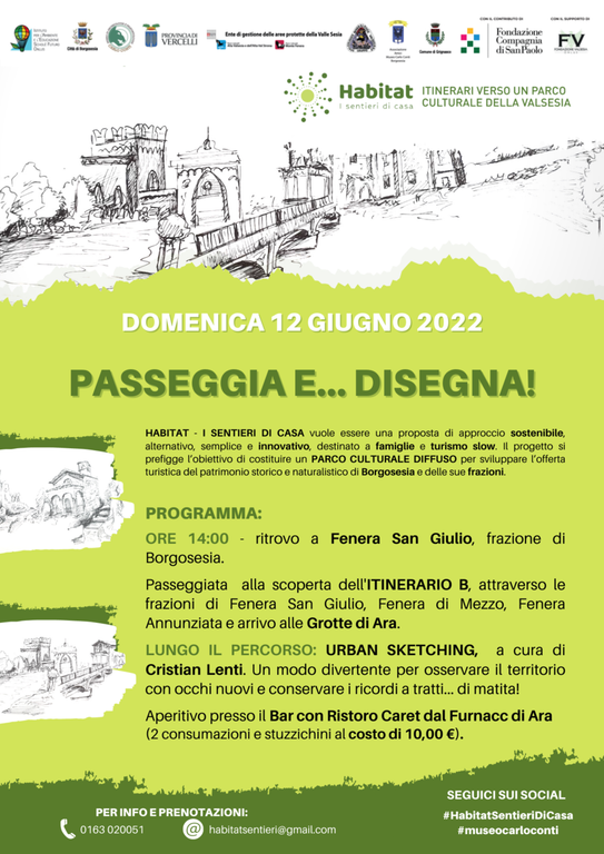 Dopo l’inaugurazione di domenica 5 giugno il progetto “Habitat. I sentieri di casa” continua con altre iniziative gratuite aperte a tutti. Domenica 12 giugno si procede con un’altra coinvolgente passeggiata attraverso le frazioni di Fenera San Giulio, Fenera di mezzo, Fenera Annunziata e con arrivo alle grotte di Ara.