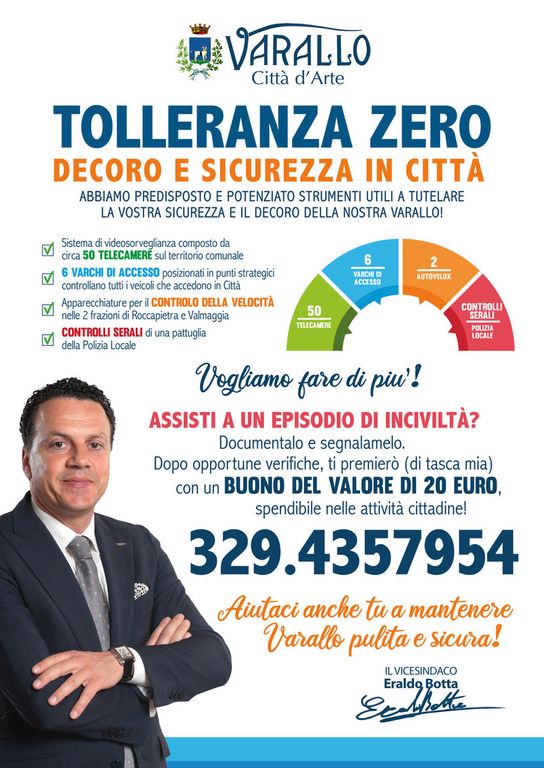 Varallo: "Tolleranza zero, decoro e sicurezza in città"