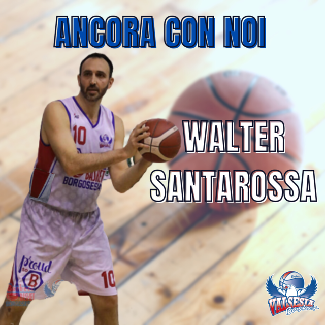 Barberi Valsesia Basket comunica con grande soddisfazione il rinnovo del contratto a Walter Santarossa (ala forte) che continuerà a vestire per il prossimo campionato 2022/23 la maglia degli Eagles, con la quale ha enormemente contribuito alla cavalcata verso la C Gold! Walter è un giocatore di grandissimo talento e versatilità che ormai è entrato nel cuore dei tifosi valsesiani per essere stato un pilastro del passato cestistico di Valsesia Basket contribuendo, dentro e fuori dal campo, a dare lustro alla società del Presidente Ballarini.