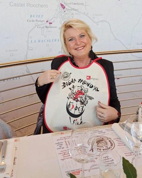 Premio Testa d’Aj anche a Carlotta Castelnovi, l’artista genovese che ben conosce Asti, che ha avuto il compito di illustrare con successo il bavagliolone di quest’anno con lo slogan «Bagna Mundial».