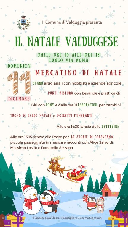 Il Comune di Valduggia organizza per domenica 11 Dicembre il Natale Valduggese.