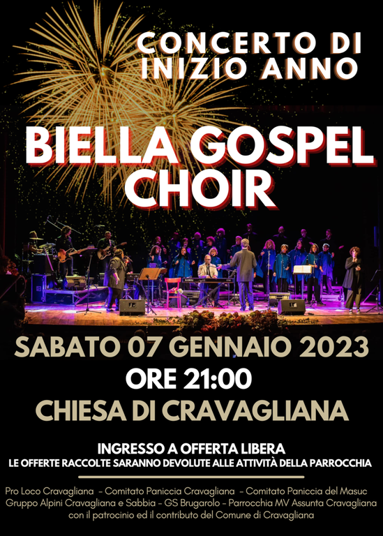 Sabato 7 Gennaio alle 21, nella Chiesa Parrocchiale di Cravagliana, si terrà il concerto natalizio di inizio anno con la partecipazione del “Biella Gospel Choir”.