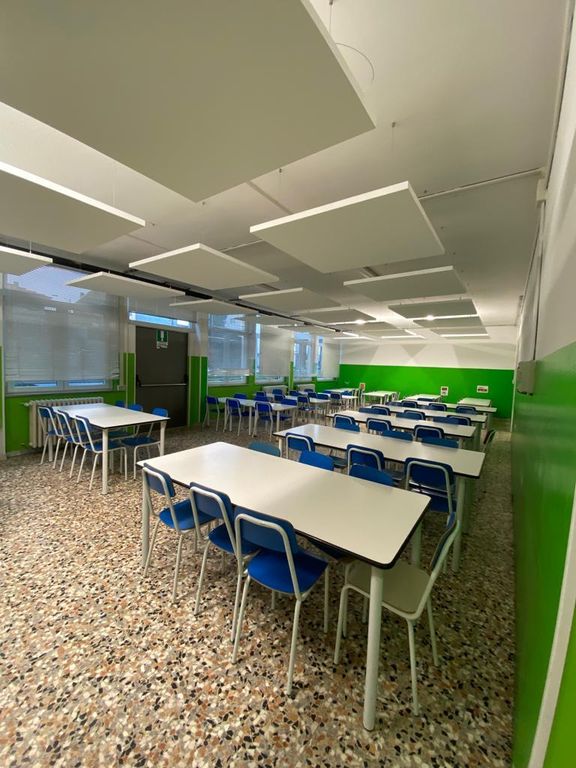 Inoltre, è stata realizzata, nei locali della mensa scolastica, una nuova controsoffittatura con pannelli fono-assorbenti ed è stato acquistato e installato, nella cucina della mensa, un nuovo cuoci pasta per realizzare in loco direttamente i pasti per i nostri alunni.