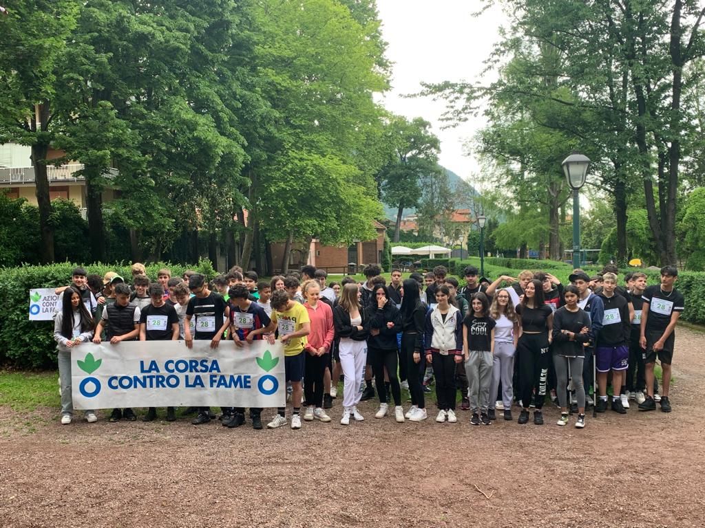 Tutte le classi prime dell’Istituto Lancia hanno corso ieri, mercoledì 24 maggio al parco Magni di Borgosesia per dire no alla fame del mondo.
