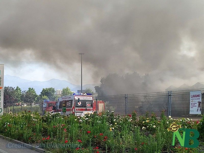 Una enorme colonna di fumo si alza da un magazzino del Gardenville sulla Trossi a Biella. Numerose squadre dei Vigili del Fuoco di Biella, Cossato e Vercelli stanno tentando di limitare l'incendio affinché non si propaghi all'intero negozio.
