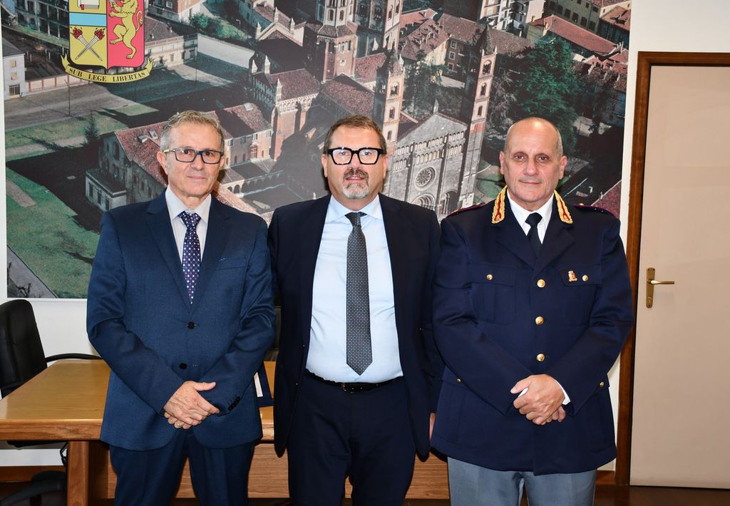 Al termine della cerimonia, il Questore di Vercelli ha consegnato al Commissario Capo Federico Fivizzani, Dirigente dell’Ufficio Immigrazione e al Vice Ispettore Francesco Mandarino, Responsabile del Gabinetto Provinciale di Polizia Scientifica, che dal 1° ottobre saranno in quiescenza, la medaglia di commiato conferita dal Capo della Polizia, per ringraziarli del servizio svolto negli anni a favore della comunità.