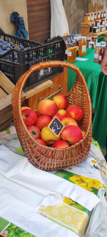 Durante la giornata di domenica gli espositori hanno presentato i prodotti locali: mele, composte, succhi, sidro e molti altri, che hanno reso la mela protagonista indiscussa. Le bancarelle, situate in Corso Cesare Alfieri, sono state visibili ai 300 partecipanti del pranzo in Piazza, delle ore 12:30.