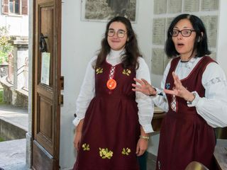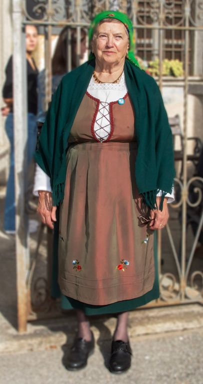 In occasione delle Giornate d’Autunno le donne camaschesi, anche le più giovani, hanno indossato i costumi “moderni” nati negli anni Cinquanta del secolo scorso, frutto di un’innovazione al costume tradizionale di colore verde scuro, ritenuto troppo disadorno, del quale è stato possibile ammirare un esempio in quello indossato dalla Signora Maria Mercede.