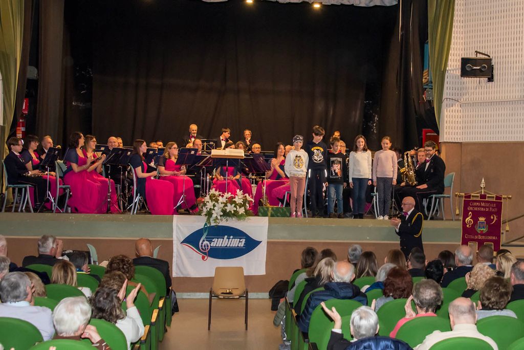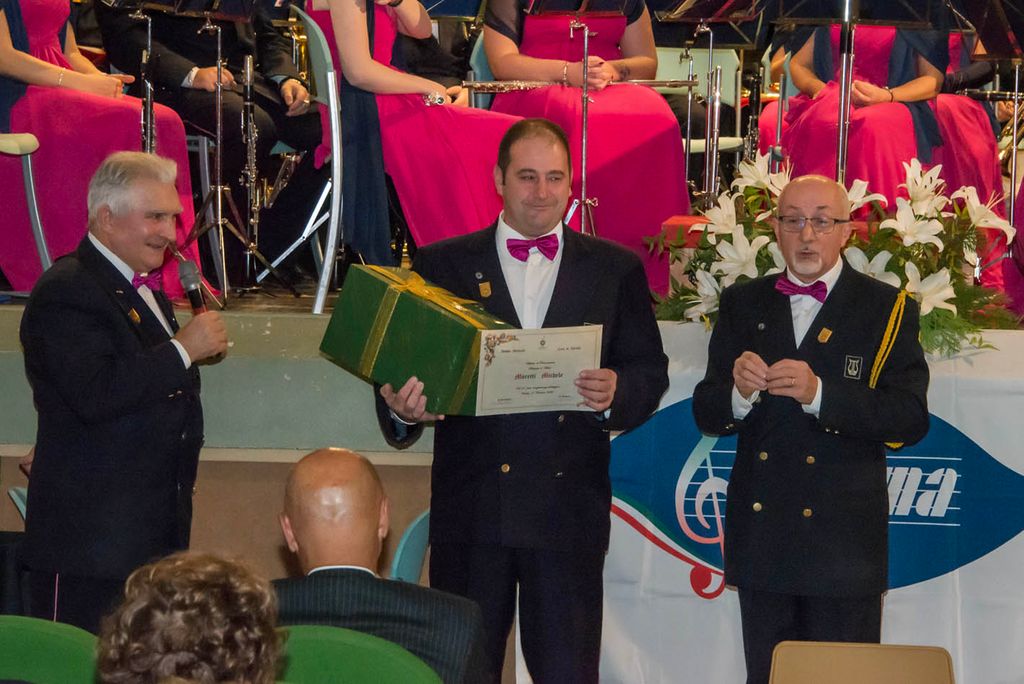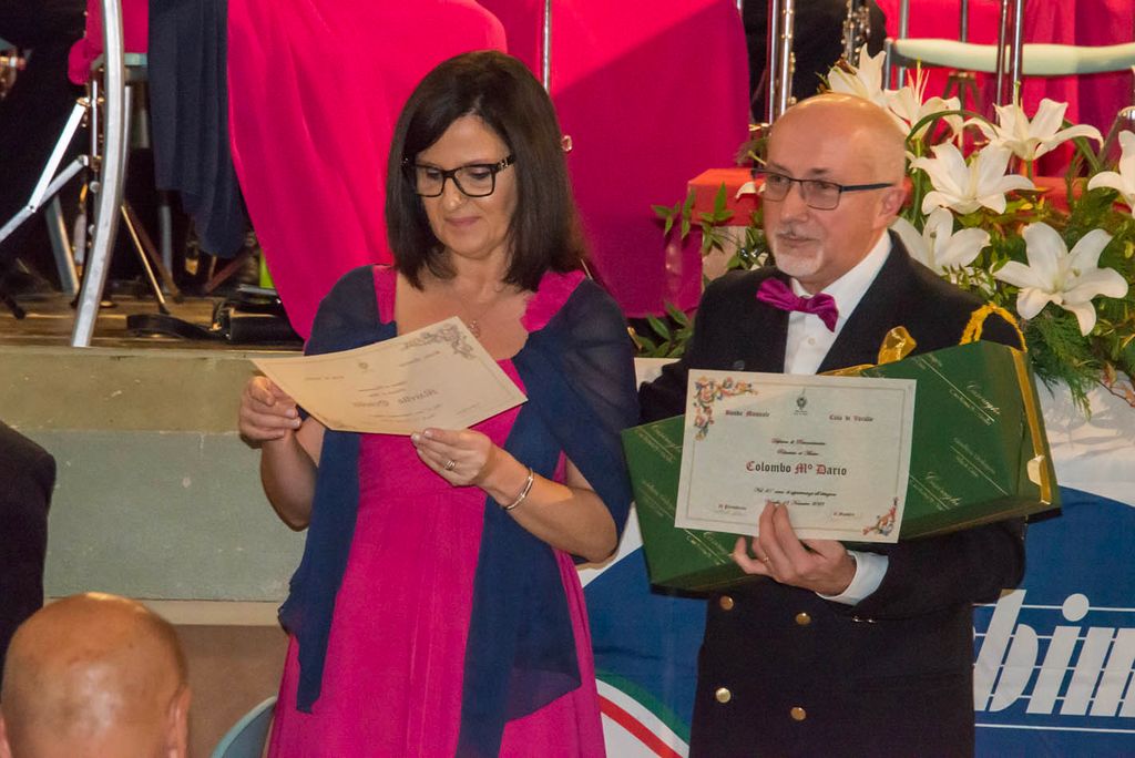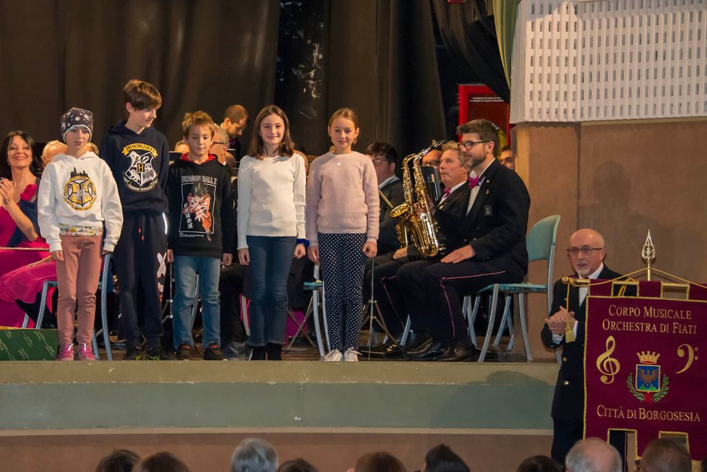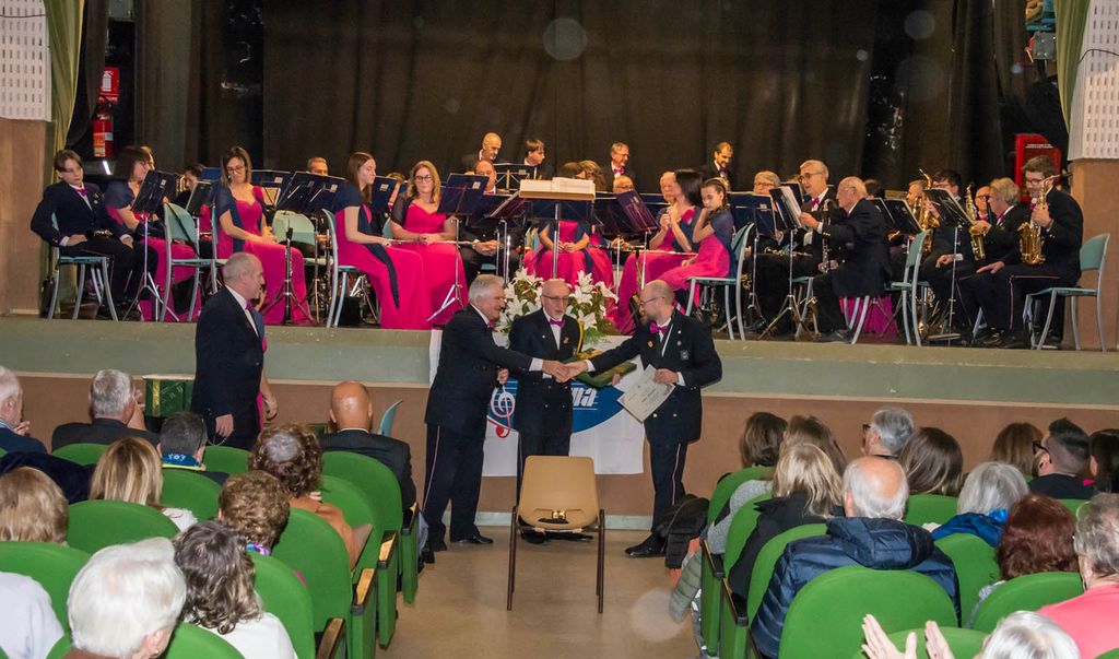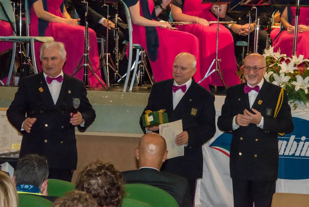 Nell’intervallo tra il primo e il secondo tempo, è stato presentato il nuovo allievo entrato ufficialmente in Banda: Alex Orgiazzi e i giovani allievi che stanno frequentando il corso sono saliti sul palco. Sono stati assegnati i “premi alla carriera”: a Michele Colombo per i vent’anni in Banda; a Maurizio Botta e Fabio Maffioli per i trent’anni; ad Andrea Dealberto, Michele Moretti, Dario Colombo, Ornella Marello, per i quarant’anni. Per il fratello del Presidente, Riccardo Dealberto un vero record: sessantacinque anni in Banda, sottolineato dal dono di una preziosa penna stilografica.