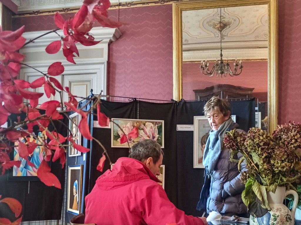 Ci trasferiamo nelle sale comunali, dove facciamo conoscenza con due pittrici, in mostra insieme a Gianni Poma e Elisa Guetta.