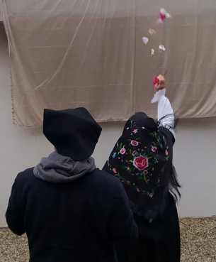 Nel ricordare Emanuela e la sua passione per i balli e le danze tradizionali sardi, ha spiegato che, allo svelamento con benedizione Cristiana impartita dal parroco, don Emanuele Biasetti, sarebbe seguito l’antico gesto di benedizione sarda con semi di frumento e petali di fiori. Come antiche madri, le donne isolane sono solite benedire i loro figli nei momenti cardine della vita, nella gioia e nel dolore. Nel matrimonio tradizionale, è la mamma che sparge i semi sul capo del nubendo, inginiocchiato sulla soglia di casa. Grano e petali di fiori sono sparsi sui corpi esamini di nubili e di celibi. Se morti prematuramente, è la madre o un’anziana a compiere il pietoso gesto, auspicando che: “comente custu trigu dae terra torrat a creschere, gai potas torreare tue puru, fizu,meu”, vale a dire, “come questo grano da terra rinasce, così possa tornare anche tu, figlio mio”. Seguito dalla rottura del piatto quale offerta esclusiva.