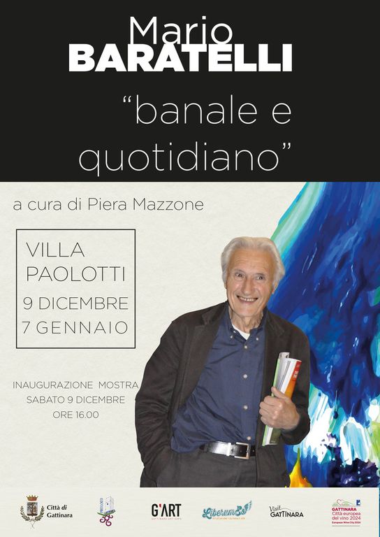 “BANALE E QUOTIDIANO” è il titolo della mostra di pittura in ricordo dell’artista Mario Baratelli, che verrà inaugurata sabato 9 dicembre, alle ore 16.00, presso lo spazio G’ART di Villa Paolotti (Corso Valsesia, 112) e promossa dal Comune di Gattinara con l’intervento della critica Piera Mazzone in collaborazione con l’Associazione LiberuEs.