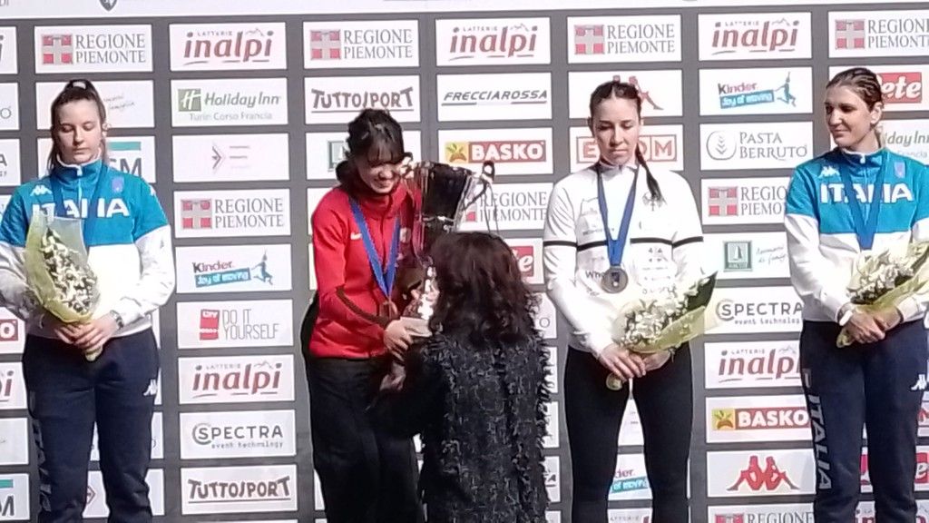 Tra le donne si è imposta - secondo pronostico - la statunitense Lee Kiefer, numero uno del ranking mondiale FIE e oro olimpico a Tokyo 2020. In finale ha battuto la azzurra Martina Favaretto per 15-11, confermando la vittoria del trofeo che si era già aggiudicata nel 2016, a Torino. Per Favaretto, invece, si tratta del secondo podio in stagione dopo il bronzo in Coppa del Mondo a Parigi, il mese scorso. Un assalto equilibrato fino al 9 pari, quando la Favaretto si è portata in vantaggio 11 – 9, per poi subire la rimonta decisiva con sei stoccate di fila che hanno consegnato la vittoria alla statunitense. In semifinale Favaretto aveva battuto di un soffio Arianna Errigo per 15-14, relegandola al bronzo. Bronzo anche per la tedesca Anne Sauer.