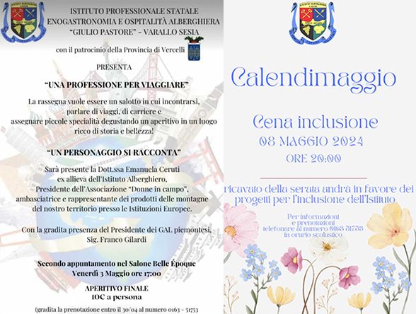 Gli eventi di maggio organizzati dall'Istituto Ipseoa G. Pastore nella sede di Varallo